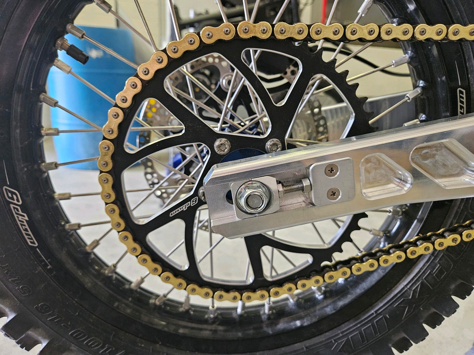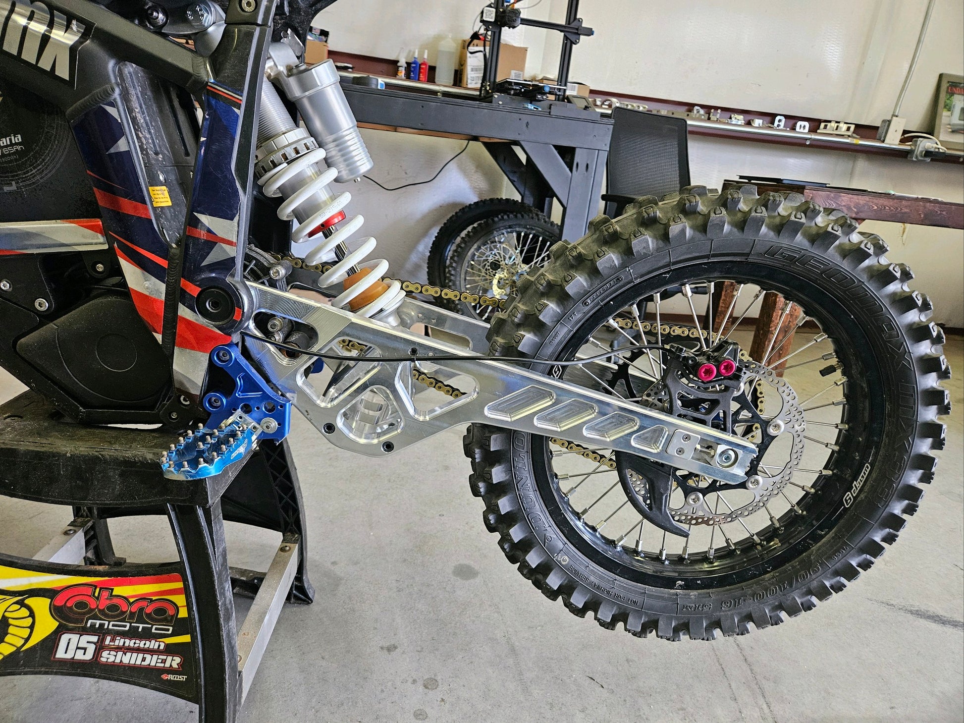 Upgraded billet aluminum Swing Arm. With this conversion, you can put your 85 suspension off your KTM, Husky, or GasGas 85 directly on your Talaria!